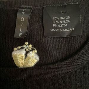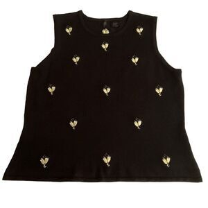 Etoile Knit Tank Top Round Neck Embroidered Champagne Glasses Black Yellow Women Size Large Festive New Years Party Event