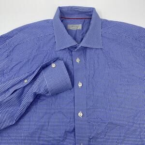 This is a pre owned Eton Mens 18/46 Contemporary Large Blue White Check Long Sleeve Button Down Shirt. This item is in good condition with minimal or no signs of use.