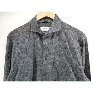 Eton Button Up Shirt Mens 42 Large Prints Contemporary Business Casual Black