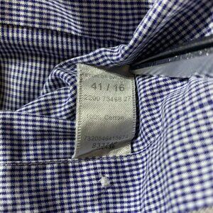 Elevate your wardrobe with the Eton Contemporary Fit men's dress shirt, a testament to sophisticated style and comfort. Tailored in a regular size 41, this shirt features a sharp blue check print that seamlessly transitions from business settings to formal events. Its long sleeves, cutaway collar, and spread neckline offer a polished look for any occasion, be it a cocktail party or a day at the office. Crafted from 100% cotton knit fabric, the shirt ensures breathability and ease of care, being machine washable. The slimming features and angled cuff top contribute to a sleek silhouette, making it a versatile addition to your collection. With its versatile all-season weight and light fabric wash, this Eton dress shirt is a true classic that combines modern design with timeless appeal.