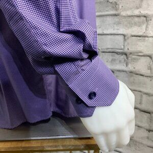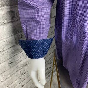 Elevate your wardrobe with the Eton Contemporary Men's Dress Shirt, a testament to timeless style and quality. The shirt features a distinctive blue and purple check print that adds a touch of sophistication to any ensemble, whether you're heading to the office or a formal event. Its spread collar and long sleeves with angled cuffs offer a sharp silhouette, while the contrast trim and lightweight fabric ensure comfort and versatility for all seasons. Crafted from soft, woven cotton, this shirt promises easy care and a relaxed fit that doesn't compromise on elegance. With a size 16.5 neck and a chest measurement of 44 inches, it's designed for the discerning gentleman who values both fit and fashion. Made in Romania, this piece is a staple for those who appreciate a blend of classic and contemporary style.