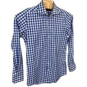 Eton Contemporary Mens Size 42/16.5 Long Sleeve Checkered Button Down Blue White