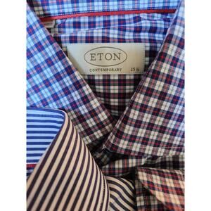 Eton Contemporary Printed Button Down Long Sleeved Cotton Shirts 15.5 Lot of 2