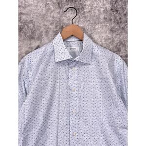 Eton Dress Shirt 42 / 16.5 Mens Contemporary Fit White Blue Bird Print Geometric