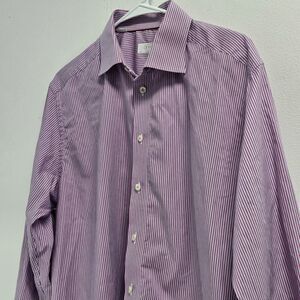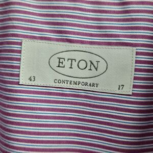 Eton Dress Shirt Men 43/17 Contemporary Red White Blue Stripes
