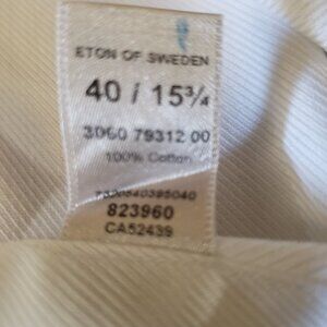 Eton of Sweden is one of the finest dress shirts on the market. Found only in the finest men's boutiques worldwide. This shirt was used for display purposes only and is new condition without tags. Never worn. It is a slimmer fit called a "Contemporary Fit". Normal retail on these bad boys are between 295- and 395 USD. This is a steal for the right person.