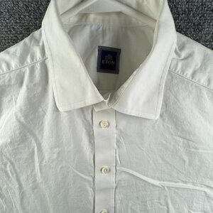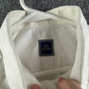 Eton Long Sleeve Button Up Shirt Men Cotton Designer White 17.5 Sweden Woven