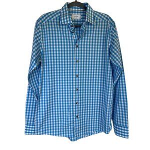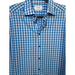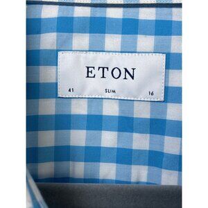 Eton Men's Shirt Size 16 / 41 SLIM Blue White Gingham L/S Collared Cotton Contem