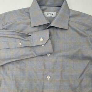 Eton Multi Color Textured Twill Long Sleeve Button Front Shirt Sz 38/15