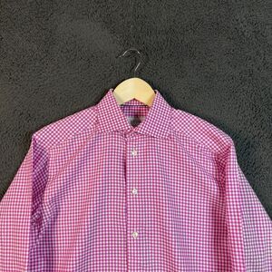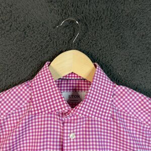 Eton Shirt Mens 15.5 Pink Check Contemporary Fit Dress Shirt Spread Collar