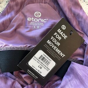 Vibrant purple athletic wear by Etonic. Built-in bra. Designed for movement.