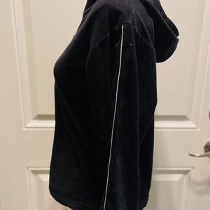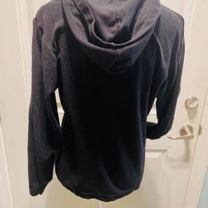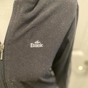This is a women’s black hooded sweatshirt. Zip up. Etonic label on breast of sweatshirt. Size small. Pockets. Gently worn. Tons of wear left to it!!