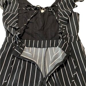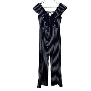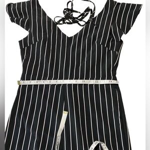 Etophe studios jumpsuit black white striped cap flutter sleeves like new size M