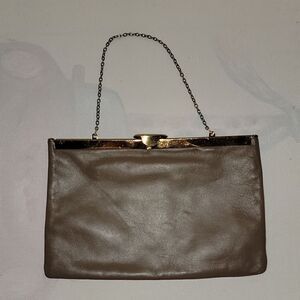 Etra Leather Clutch Handbag Vintage 1950s Taupe