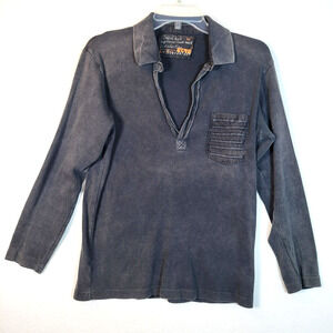 Etre Clothing Womens Collared Pocket Ribbed Top Size Medium Black Distressed
