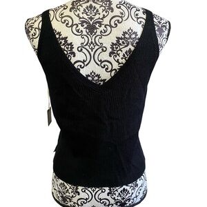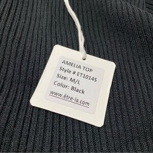 Etre-La Women’s Black Ribbed V-Neck Top NWT Sz-M/L