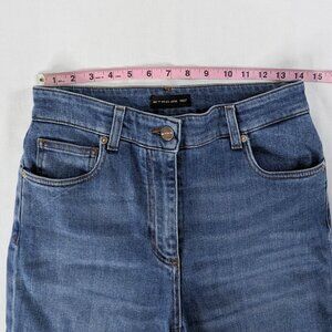 Etro Aztec Tapestry Embroidered Hem Crop Length Wide Leg Raw Hem Jeans Bohemian