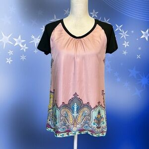 Etro Black Cotton & Pink Paisley Silk Front Short-Sleeve T-Shirt Size 40 = Small