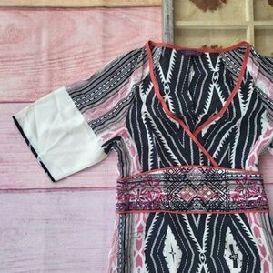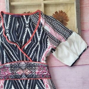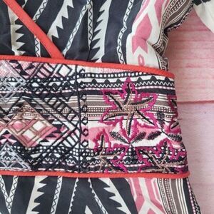 Etro Black/White Diamond Geometric Embroidered Silk Kimono Sleeve Mini Dress, women's size XS