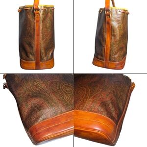 Etro | Brown Paisley Print Coated Canvas Two Toned Drawstring Bucket Bag