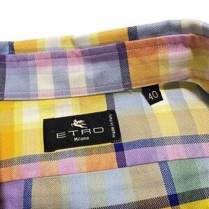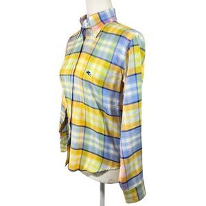 Etro Check Long Sleeve Button-Down Shirt Size 6 Small Multicolor