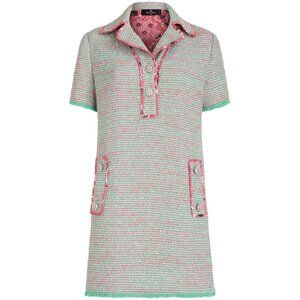 Etro Collared Shirt Dress in Green Pink 38 New Womens Tweed Boucle Mini
