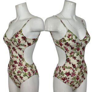 Etro Cutout Floral Print One Piece Swimsuit S White Berry Design Beach Italy