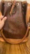 Stylish Etro bag with tan fabric and brown leather details. Crafted in Italy.