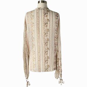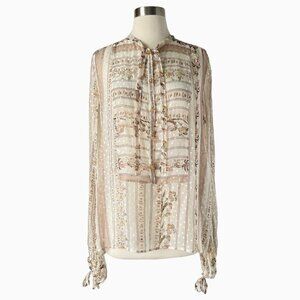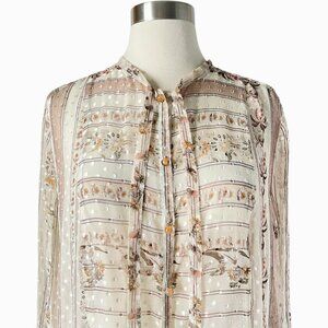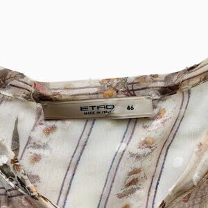 Etro Sheer Floral Stripe Dot Blouse 46 Tie Neck Long Sleeve Boho Top