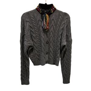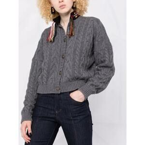 Etro Grey Wool Cashmere Blend Cable-Knit Cropped Cardigan Womens Size 38 / US 2