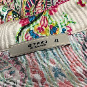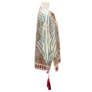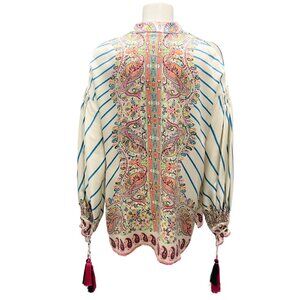 Etro Ivory Multi Paisley Printed Tassel Detail Silk Blouse