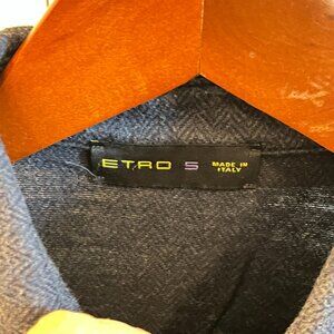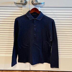 Etro Long Sleeve Herringbone Polo - Navy, Small