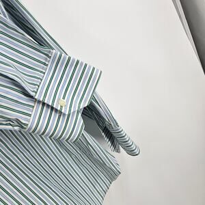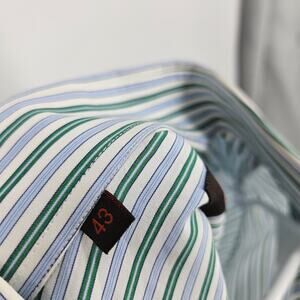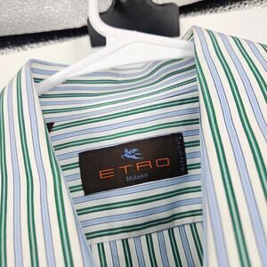 Etro Men's Shirt White Blue Green Striped Button Down Long Sleeve Italy Size 43 US L