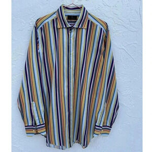 Etro Mens Vertical Striped Print Button Down Milano Polo Shirt Multicolor Sz 42