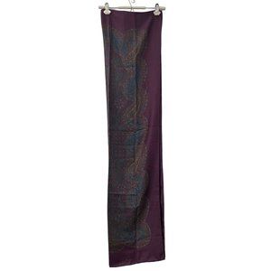 Etro Milano Burgundy Multicolor Paisley Wool Blend Large Scarf