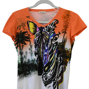 Etro Milano T-Shirt Size 40 US 4 Multicolor Zebra Print V-Neck Graphic Tee
