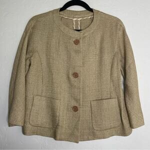 Etro Milano Tan Metallic Knit Lightweight Three Button 3/4 Sleeve IT 42 XL