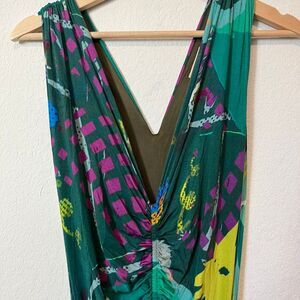 Etro Milano Turquoise Green Abstract Floral Ruched Maxi Dress Women's Size 46 US 10