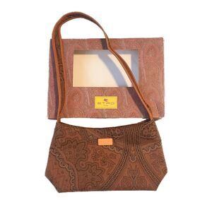 Etro NEW Signature Tan Paisley Print Canvas & Leather Shoulder Bag MSRP $925