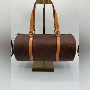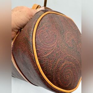 Etro Paisley Papillon shoulder bag, Brown Coated Canvas. Brass Hardware m, Leather Trim, Flat Handles, Canvas Lining. Zip Closure at Top