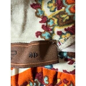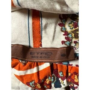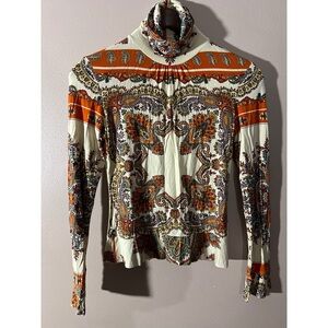 Elevate your style with this vibrant paisley print women's top. Featuring a stunning mix of orange and cream, this top is perfect for any occasion. Enjoy the comfort and elegance it brings to your wardrobe.pit to pit 17” length 20”