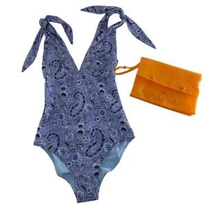Etro Paisley-Printed V-Neck One-Piece Swimsuit Size S