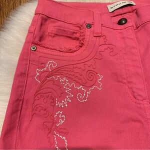 Etro Pink Embroidered Skinny Size 28 Raw hem, front and back pockets