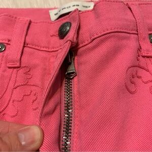 Etro Pink Embroidered Skinny Size 28. Excellent preowned condition. Raw hem, front and back pockets. Zip up closure. 100% cotton denim. Bright color, spring. Pink and white embroidered.
