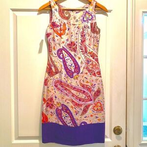 This elegant midi dress by Etro showcases a harmonious blend of purple and cream hues, offering a sophisticated look. Crafted with attention to detail, it features a flattering silhouette that drapes beautifully. Ideal for both casual and formal occasions, this dress is a timeless addition to any wardrobe.