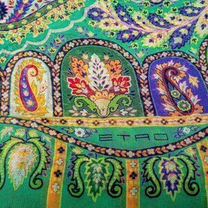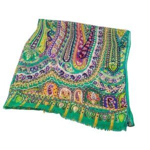 Stunning sheer pure silk chiffon fringed oblong scarf/wrap from Etro in a colorful floral paisley print.
