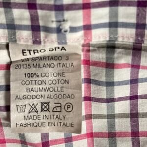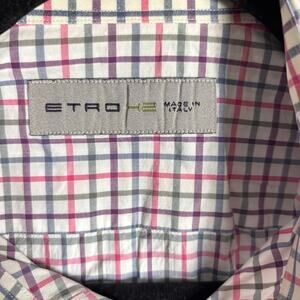 Etro Shirt Mens 42 Large Multicolor Check Plaid Made in Italy Long Sleeve Cotton