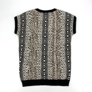 Etro Short Sleeve Sweater Brown Black Cream Grey Leopard & Geometric Pattern Italian Size 38 = US Size 2