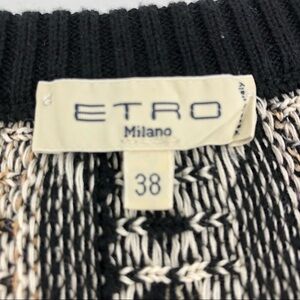 Etro Short Cap Sleeve Sweater Brown Cream Grey Animal & Geometric Pattern Size 2