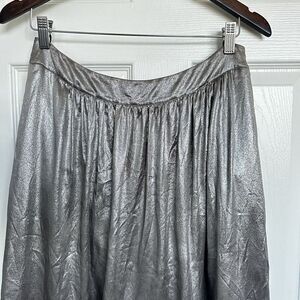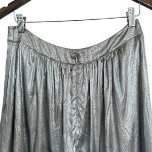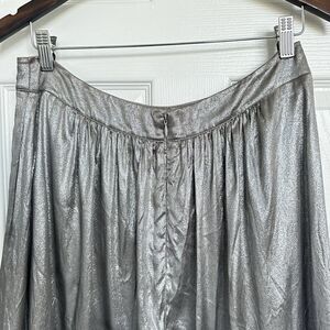 Etro Silver Gray Metallic Pleated Midi Skirt 100% Silk Size 46 /US 10